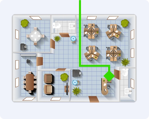 Empower employees and visitors with real-time floor plans, wayfinding, and seamless space booking.